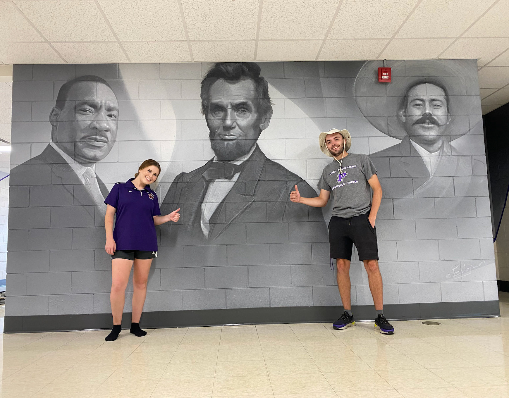 School murals featuring historic figures and images important to this particular district