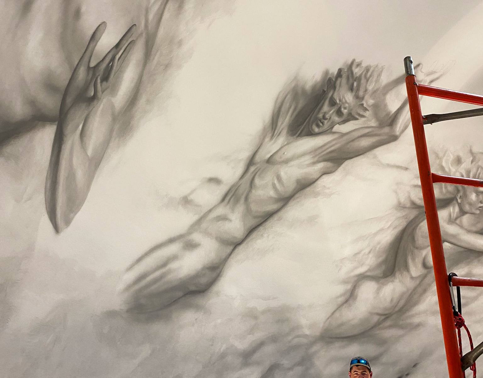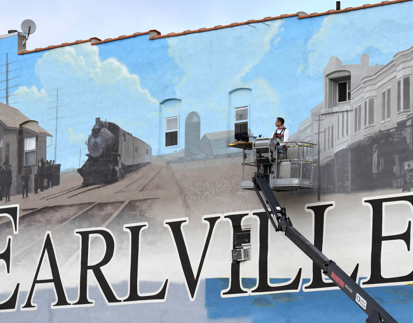 Historic Mural for town of Earlville. A massive eighty five feet wide by forty five feet in height.